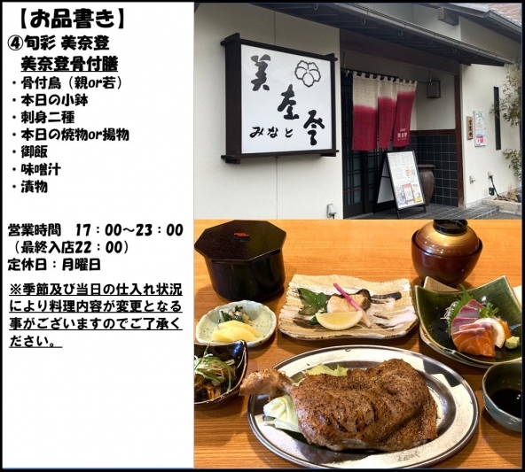 ④旬彩美奈登 美奈登骨付和膳 電話:0877-75-2339